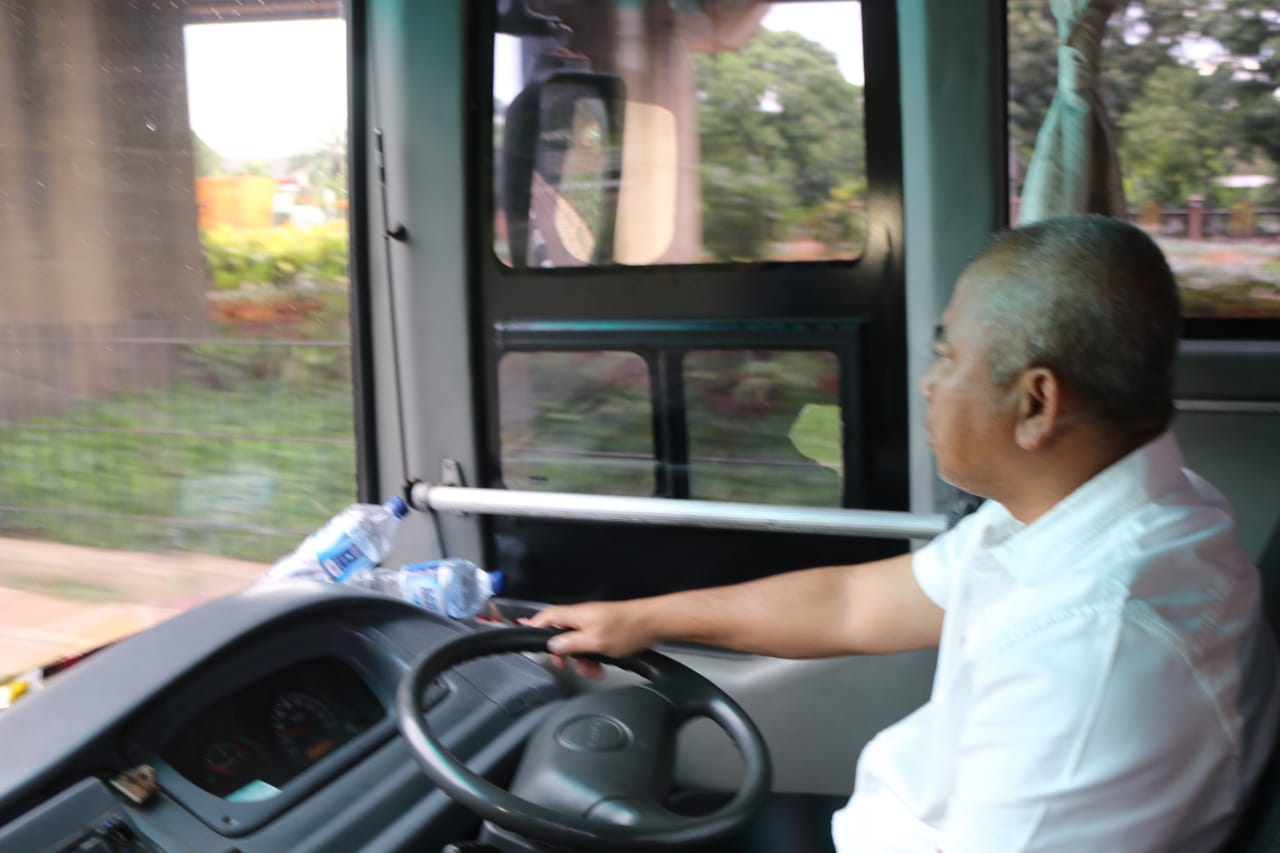 Melihat Bis antar jemput pegawai yang rutenya dari Stadion Patriot Chandrabaga menuju Kantor Pemerintah Kota Bekasi, Wali Kota kendarai sendiri bis tersebut untuk mengantar para pegawai yang akan ke kantor untuk laksanakan apel.