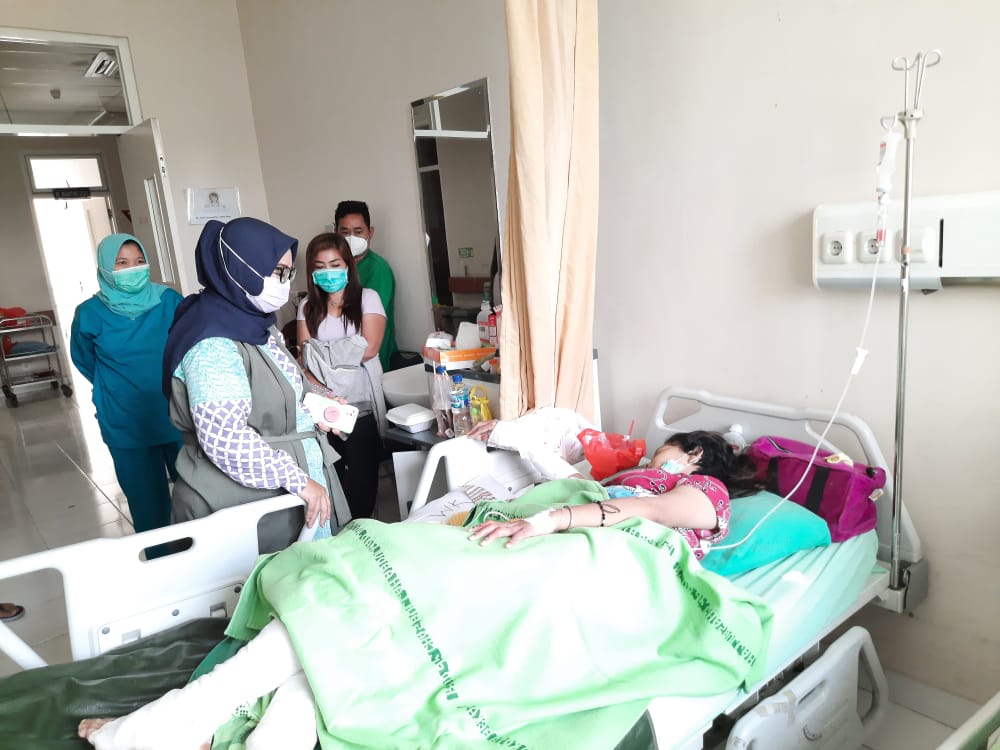 Wujud kepedulian terhadap warga Kota Bekasi, Ade Puspitasari tengok ananda Stela Putri yang sedang di rawat di RSUD Kota Bekasi akibat luka bakar sekujur tubuhnya.