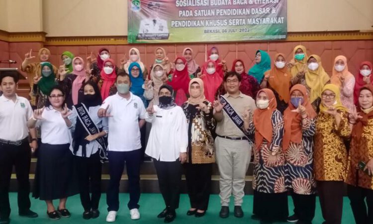 PILAR BEKASI.COM (KOTA BEKASI) – Bunda Literasi Kota Bekasi Wiwiek Hargono Tri Adhianto buka Sosialisasi Budaya Baca dan Literasi pada Satuan Pendidikan Dasar dan Pendidikan Khusus serta Masyarakat. Pembukaan berlangsung di Balai Patriot Kota Bekasi, Jl. Ahmad Yani, Bekasi Selatan, Rabu 06/07/2022.