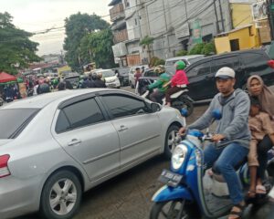 PILAR BEKASI. COM (JATI ASIH) – Kemacetan panjang terjadi di Jalan Swatantra,Kelurahan Jatirasa,Kecamatan Jati Asih, imbas proyek perbaikan jalan dan saluran drainase. Petugas memberlakukan sistem
