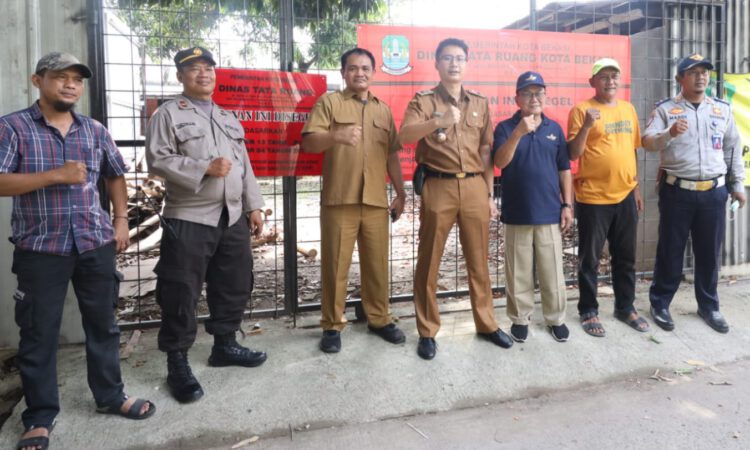 PILAR BEKASI.COM (BEKASI SELATAN) – Pemerintah Kota Bekasi melalui Dinas Tata Ruang Kota Bekasi bersama dengan Polres Metro Bekasi Kota dan Kodim 0507/Bekasi, Sub Depom Jaya 2 -1 , Kejaksaan Negeri Kota Bekasi dan unsur OPD Kota Bekasi melakukan giat penyegelan bangunan MCK, Penampungan Limbah dan Rongsokan yang berlokasi di Jalan Tenggiri Raya RT 02 RW 04 (samping SMPN 4 Kota Bekasi) Kelurahan Kayuringin Jaya, Kecamatan Bekasi Selatan Kota Bekasi.