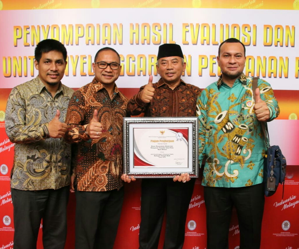 Dari 34 Provinsi dan 208 Kabupaten/ Kota,Kota Bekasi melalui Dinas Penanaman Modal Pelayanan Terpadu Satu Pintu (DPMPTSP) Kota Bekasi berhasil menerima penghargaan hasil evaluasi penyelenggara Pelayanan Publik dengan kategori (A-) sangat baik yang langsung diserahkan oleh Menteri Perdayagunaan Aparatur Negara dan Reformasi Birokasi Republik Indonesia, Drs. Syafrudin M.Si.