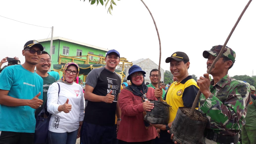 Penanaman pohon dilakukan serentak disekitar Polder air Aren Jaya, ditandai dibunyikan sirine oleh Wakil Walikota Bekasi Tri Adhianto bersama unsur Muspika Bekasi Timur dan Camat Bekasi Timur.