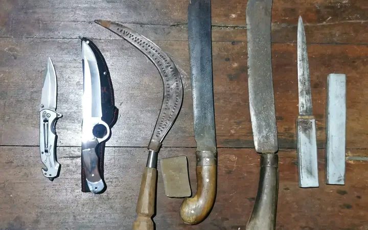Dari hasil penggeledahan, polisi menemukan dua bilah senjata tajam jenis belati yang disisipkan di pinggang dan disimpan di saku celana. Selain itu, petugas juga mengamankan sebuah tas punggung warna hitam yang berisi satu bilah belati jenis sangkur, satu bilah belati lipat.