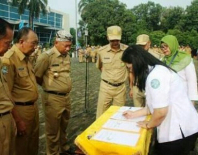 PILAR BEKASI.COM (Bekasi Selatan) – Walikota Bekasi Rahmat Effendi memimpin apel yang dirangkaikan dengan penandatanganan MoU dengan Kantor BPJS terkait perluasaan pelayanan di tiap Kecamatan se-Kota Bekasi serta penyerahan penghargaan Pasar Ukur untuk Pengelola Pasar Sinpasa dan Pasar Galaxy, Senin (6/3/2017).