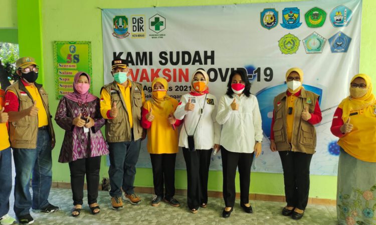 Penyelenggaraan Vaksinasi bagi anak berlangsung di Gedung Sekolah yang ada di Kota Bekasi. Wali Kota Bekasi bersama Menteri PPPA mendatangi beberapa Sekolah diantaranya Al Azhar SMB Bekasi Utara dan SMPN 5 Kota Bekasi.
