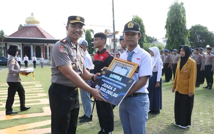 PILAR BEKASI.COM (KAB KEBUMEN) — Polres Kebumen menyerahkan hadiah kepada para pemenang lomba reels AI bertema pesan kamtibmas tingkat SMP/SMA Tahun 2026. Penyerahan dilakukan langsung oleh Kapolres Kebumen AKBP I Putu Bagus Krisna Purnama dalam apel jam pimpinan di Mapolres Kebumen, Senin 20 April 2026.