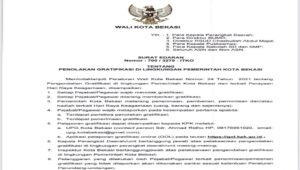 PILAR BEKASI.COM (BEKASI SELATAN) – Pemerintah Kota Bekasi keluarkan surat edaran nomor 700/3279 – ITKO tentang Penolakan Gratifikasi di Lingkungan Pemerintah Kota Bekasi.