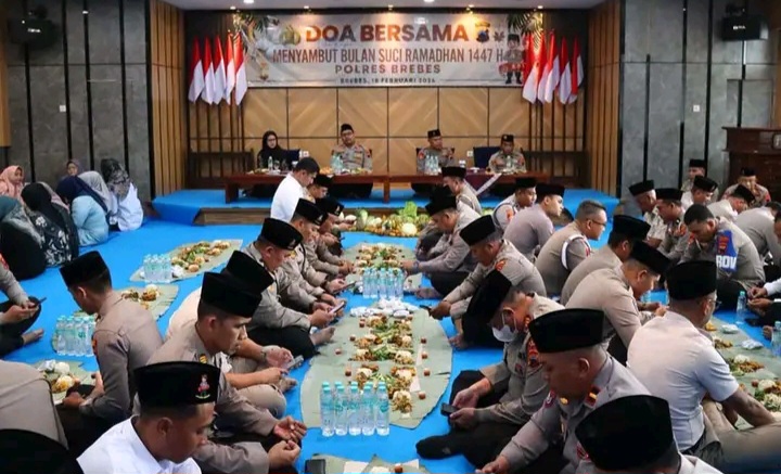 PILAR BEKASI.COM (KAB.BREBES) – Menjelang datangnya Bulan Suci Ramadhan 1447 Hijriah, Kepolisian Resor (Polres) Brebes menggelar tradisi “Punggahan” dengan suasana penuh kekeluargaan. Acara yang diisi dengan makan bersama ini berlangsung khidmat di Aula Utama Mapolres Brebes pada Rabu (18/2/2026) siang.