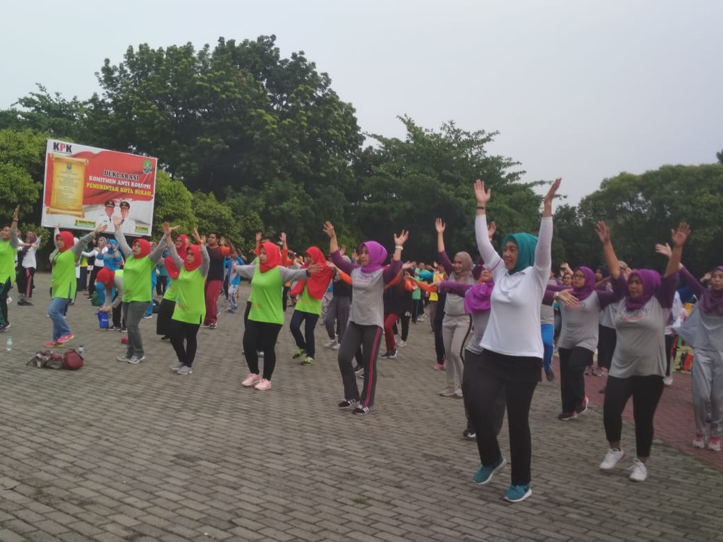 Senam bersama dilakukan di Plaza Pemkot Bekasi Kantor Walikota Bekasi diikuti para insan kesehatan dari puskesmas se-Kota Bekasi, RSUD Kota Bekasi,RS Swasta dan Dinas Kesehatan Kota Bekasi.