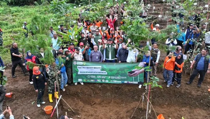 Ajakan tersebut disampaikan Rudy saat memimpin kegiatan penanaman pohon di kawasan hulu Sungai Ciliwung, Cisarua, Rabu (5/2). Kegiatan ini merupakan bagian dari program penanaman pohon serentak dan pembangunan hutan kota di 40 kecamatan se-Kabupaten Bogor.