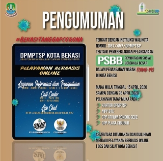 Ditempat terpisah Kepala Dinas Penanaman Modal dan Pelayanan Terpadu Satu Pintu ( DPMPTSP) Kota Bekasi, Lintong Ambarita mengatakan untuk sementara Pelayanan di Dinas Penanaman Modal dan Pelayanan Terpadu Satu Pintu ( DPMPTSP) Kota Bekasi pelayanan tatap muka di hentikan dan dialihkan ke pelayanan tanpa tatap muka yaitu sistem on line OSS dan on line SILAT.