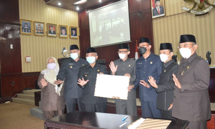 PILAR BEKASI.COM (BEKASI TIMUR) – Sidang Paripurna penyampaian Laporan Keterangan Pertanggunjawaban Tahun anggaran 2020 telah ditandatangani bersama Wali Kota Bekasi Rahmat Effendi dan Ketua DPRD Kota Bekasi Chairumman J. Putro pada siang ini di Kantor DPRD Kota Bekasi.