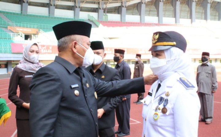 PILAR BEKASI.COM (BEKASI SELATAN) – Sore ini, Wali Kota Bekasi, Rahmat Effendi didampingi Wakil Wali Kota Bekasi, Tri Adhianto dan Sekertaris Daerah, Renny melaksanakan pelantikan promosi jabatan dan mutasi aparatur Pemerintahan di Stadion Patriot Chandra Baga Kota Bekasi, Jumat (06/08/2021).