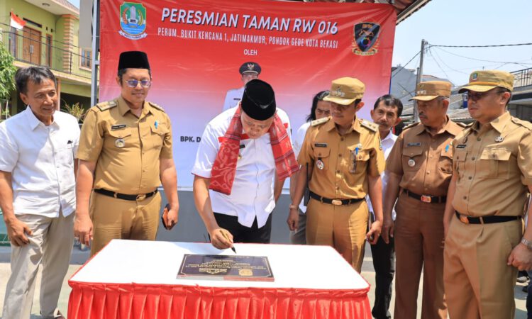 PILAR BEKASI.COM (Kota Bekasi) – Telah banyak pembangunan yang tersebar di seluruh wilayah Kota Bekasi, baik itu pembangunan sarana prasarana pendidikan, sarana prasarana kesehatan, dan revitalisasi lahan terbuka menjadi taman. Pada Selasa (05/09) dilakukan peresmian 4 taman sekaligus oleh Wali Kota Bekasi, Tri Adhianto, di wilayah Kecamatan Pondokgede, yakni Taman RW 012 Kelurahan Jatiwaringin, Taman RW 016 Kelurahan Jatimakmur, Taman RW 06 Kelurahan Jatibening Baru, dan Taman RW 012 Kelurahan Jatibening.