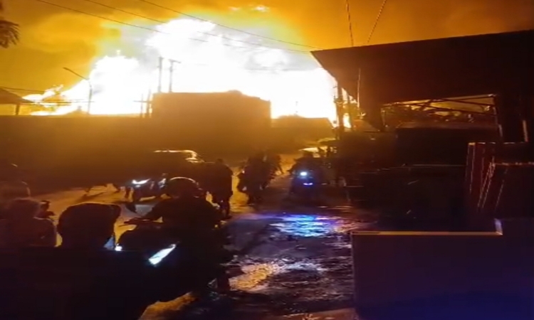 PILAR BEKASI.COM (KOTA BEKASI) – Kebakaran hebat melanda Stasiun Pengisian Bulk Elpiji (SPBE) Cimuming, Kecamatan Mustika Jaya, Kota Bekasi, Jawa Barat, pada Rabu (01/04/26) malam.Peristiwa terjadi sekitar pukul 21.00 WIB. Api terlihat membesar dari area SPBE dan merembet ke jaringan listrik serta beberapa rumah warga di sekitar lokasi. Kondisi tersebut membuat masyarakat berlarian menyelamatkan diri.