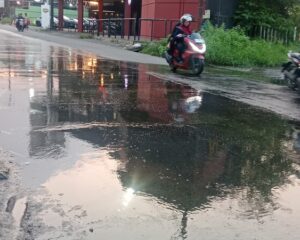 Buruknya Drainase Membuat Air Meluap Ke Jalan Raya